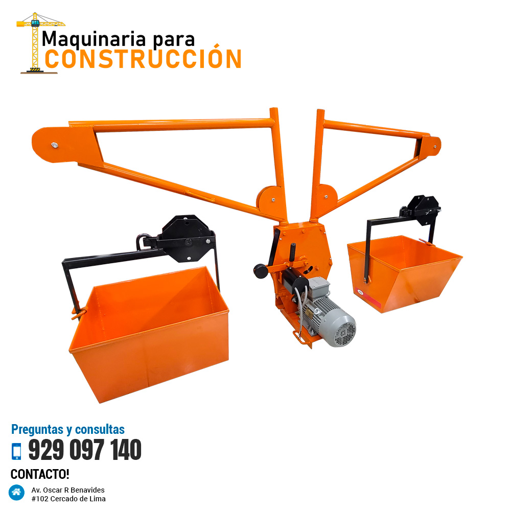 Nuestro Winche eléctrico para construcción trifásico con motor de 5 HP y 2 baldes con capacidad de carga de 350Kg cada uno. Tiene un alcance total de 30 metros de cable, sería para unos 10 a 12 pisos aproximadamente. Todos nuestros productos cuentan con garantia Realizamos envios a nivel nacional